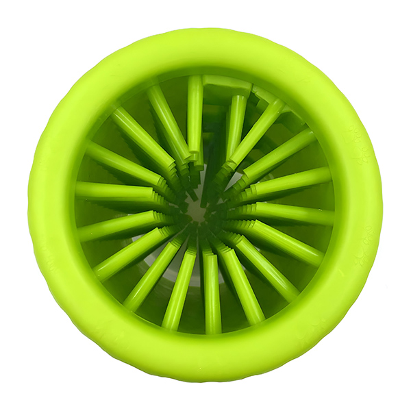 Ο κυλινδρικός σχεδιασμός σας επιτρέπει να πλένετε αποτελεσματικά τις δυσπρόσιτες περιοχές. Απλά εισάγετε το πόδι του σκύλου σας, περιστρέψτε το και αφήστε τις τρίχες σιλικόνης να απομακρύνουν τη βρωμιά και τα υπολείμματα. Απολαύστε ένα πεντακάθαρο σπίτι χωρίς την ταλαιπωρία.