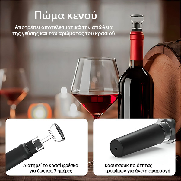 🔒 Το πώμα κενού αέρος διατηρεί το ανοιγμένο κρασί φρέσκο για μέρες
