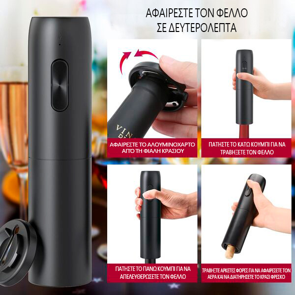 1x Ηλεκτρικό ανοιχτήρι κρασιού VINOCORK