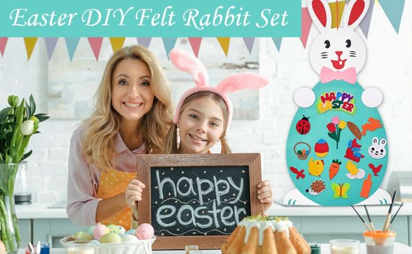Εύκολο στη χρήση – απλώς κολλήστε τα διακοσμητικά στους συνδετήρες. Δέστε το λαγουδάκι και κρεμάστε το στον τοίχο με γάντζους ή καρφιά. Τα πασχαλινά κουνελάκια από τσόχα μπορούν να τοποθετηθούν σε τοίχους, παράθυρα, πόρτες ή οπουδήποτε σας αρέσει.