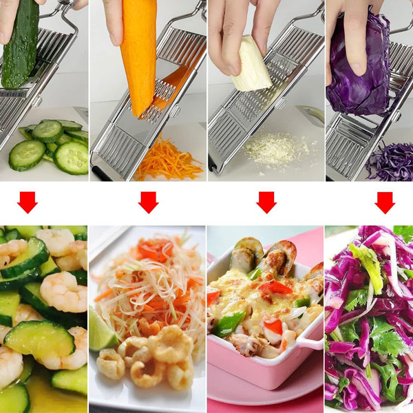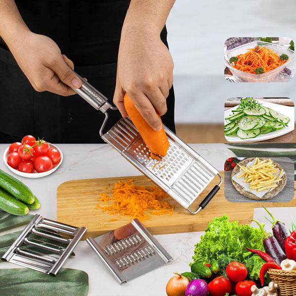 🧑🍳 Πολυλειτουργικός σχεδιασμός: Κόψτε, τρίψτε και ψιλοκόψτε με ένα εργαλείο—ιδανικό για σαλάτες, τηγανητές πατάτες και γρήγορα γεύματα.
