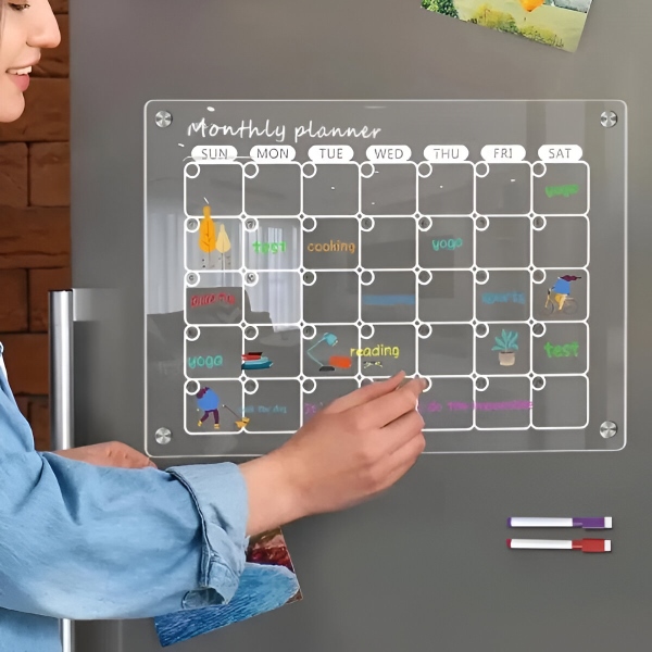 Το ακρυλικό σετ μηνιαίου και εβδομαδιαίου ημερολογίου ψυγείου είναι σχεδιασμένο για να προγραμματίζετε την καθημερινότητά σας, το κομψό ακρυλικό μαγνητικό ημερολόγιο σας επιτρέπει να γράφετε περισσότερα, να καταγράφετε την καθημερινή, εβδομαδιαία ή μηνιαία λίστα με τις εργασίες σας για να κρατάτε τη ζωή σας οργανωμένη, κατάλληλο για την καταγραφή γεγονότων, ατζέντες, οικογενειακές δραστηριότητες, ραντεβού και πολλά άλλα.