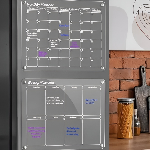 Ο κομψός, διαφανής ακρυλικός σχεδιασμός του όχι μόνο προσθέτει μια μοντέρνα πινελιά στην κουζίνα σας, αλλά προσφέρει επίσης έναν αποτελεσματικό τρόπο διαχείρισης των καθημερινών σας δραστηριοτήτων.